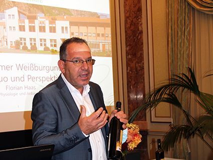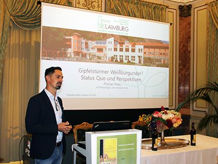 In einem Impulsvortrag referierte Florian Haas, Leiter der Arbeitsgruppe „Physiologie und Anbautechnik“ im Fachbereich Weinbau des Versuchszentrums Laimburg, über den Status Quo und die Perspektiven der Rebsorte Weißburgunder in Südtirol. Der Weißburgunder hat in Norditalien, vor allem aber in Südtirol mit 11 % bepflanzter Rebfläche einen hohen Stellenwert und stellt sich immer mehr als potenzielle Leitrebsorte heraus. Im Zuge des vom Europäischen Fonds für Regionale Entwicklung (EFRE 2014–2020) geförderten Projekts PinotBlanc haben die Experten des Versuchszentrums Laimburg die Anbaueignung des Weißburgunders in höheren Lagen bewertet und durch sensorische Analysen die Qualitätsparameter für Weißburgunder-Weine Südtirols bestimmt. „Unsere Analysen haben ergeben, dass standortbedingte Qualitätsunterschiede vorliegen, vor allem betreffend der Säurestruktur und der Aromatik“, berichtete Haas: „Eine Anbaueignung in höheren Lagen ist gegeben; weiterhin bleiben aber auch tiefere Lagen attraktive Anbaustandorte, wenn man anbautechnische Anpassungen vornimmt und eine sorgfältige Klonselektion betreibt.“ Am Projekt PinotBlanc beteiligt war ein interdisziplinäres Forscherteam aus den Arbeitsgruppen „Physiologie und Anbautechnik“ (Weinbau), „Verfahren und Wissenstransfer“ (Önologie) und des Labors für Aromen und Metaboliten des Versuchszentrums Laimburg. Bei der Entwicklung und Durchführung des Projekts stand das Versuchszentrum Laimburg in engem Kontakt mit dem Konsortium Südtiroler Wein, dem Verband der Kellereigenossenschaften Südtirols, der Associazione enotecnici italiani (Assoenologi – Sektion Südtirol) sowie mit verschiedenen Kellereien und privaten Produzenten.