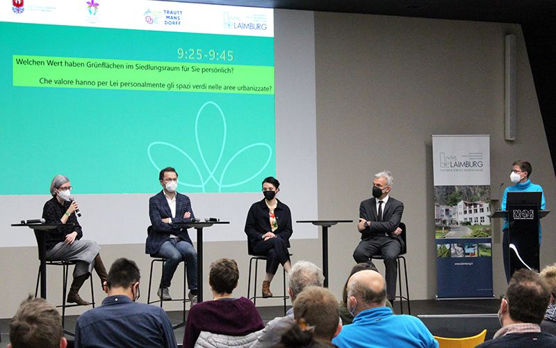 „Wenn die Rede von Grünflächen ist, geht es nicht nur um die Verschönerung durch ein paar Blumenbeete, es geht um mehr. Grünflächen kühlen und befeuchten die Luft, filtern Staub, funktionieren im Sommer als Klimageräte, lassen im Winter Licht durch, sind Erholungsgebiete und Luftschneisen in Siedlungsräumen. Außerdem sorgen sie für die Entsiegelung von Oberflächen, wodurch Starkniederschläge versickern können und verbinden als Grünkeile Stadt und Land“, führte die Leiterin des Fachbereichs „Gartenbau“ am Versuchszentrum Laimburg Helga Salchegger in die Fachtagung ein. Über den Wert von Grünflächen diskutiert wurde ebenfalls am runden Tisch. Mit dabei waren Landesrat für Landwirtschaft Arnold Schuler, der Bürgermeister von Bruneck Roland Griessmair, die Vizebürgermeisterin von Meran Katharina Johanna Zeller, Helga Salchegger, Fachbereichs-Leiterin „Gartenbau“ am Versuchszentrum Laimburg und Sonia Gantioler, Senior Researcher am Institut für Erneuerbare Energie, Eurac Research. Alle waren sich einig, dass den Grünflächen in Siedlungsgebieten auch aufgrund des durch den Klimawandel verursachten Temperaturanstiegs in Zukunft eine noch größere Bedeutung zukommen wird.