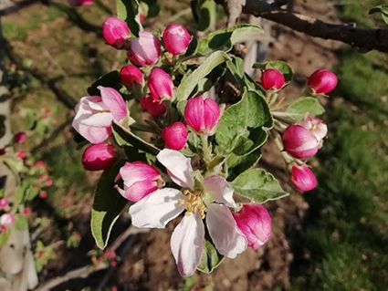 La varietà a fioritura precoce Pink Lady® è attualmente nella "fase dei mazzetti divaricati”, ovvero gli steli dei fiori si allungano, i sepali sono leggermente aperti e i petali appena visibili. Secondo gli esperti del Centro di Sperimentazione Laimburg, questa varietà dovrebbe fiorire quattro giorni prima di Golden Delicious, cioè verso il Lunedì di Pasqua, 5 aprile.