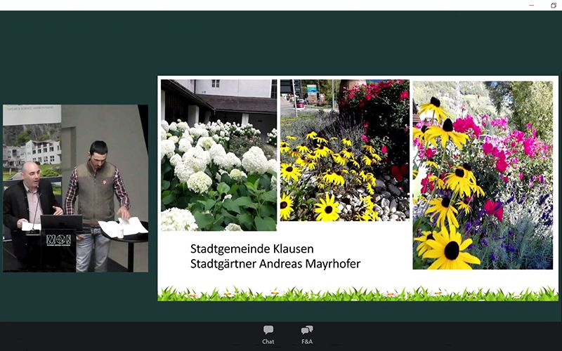 Il prato fiorito negli spazi verdi pubblici con esempi dal Nord, Est e Sud Tirolo è stato il tema di Matthias Karradar del forum "Natur im Garten" di Innsbruck. Karradar ha mostrato come progettare spazi verdi e aiuole in un modo ecologicamente prezioso e sostenibile, per esempio con specie annuali e perenni autoctone e con una cura appropriata.
