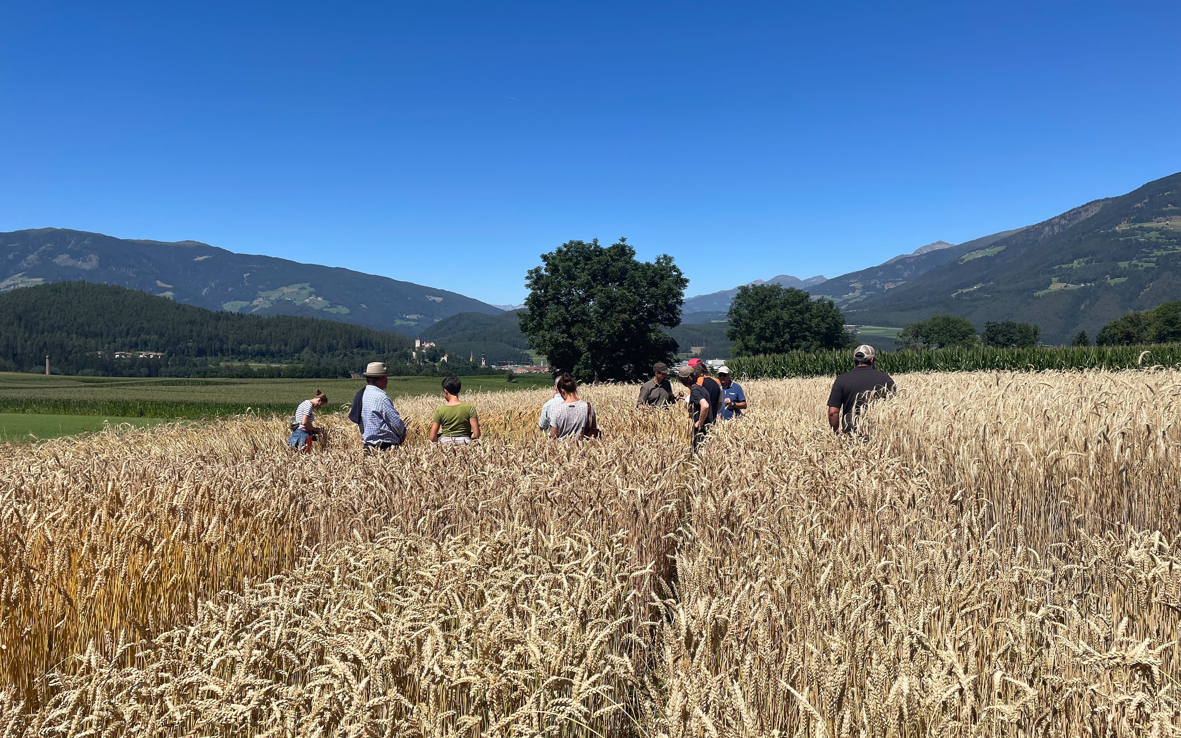 Dopo un drastico calo 100 anni fa, la coltivazione di cereali in Alto Adige sta riprendendo piede. Questo anche grazie a progetti come “Regiograno”, per il rilancio della cerealicoltura altoatesina, e la selezione varietale, obiettivo di ricerca del Centro di Sperimentazione Laimburg. Mercoledì 13.07.2022, gli esperti del Centro Laimburg hanno invitato gli interessati a Teodone per una visita al campo sperimentale per presentare i risultati delle prove varietali su segale invernale ed estiva, la riscoperta di vecchie varietà, come il “Binkel”, i vantaggi della coltivazione di leguminose ricche di proteine, nonché il progetto il "Field100", un campo coltivato con 100 varietà diverse senza glutine.