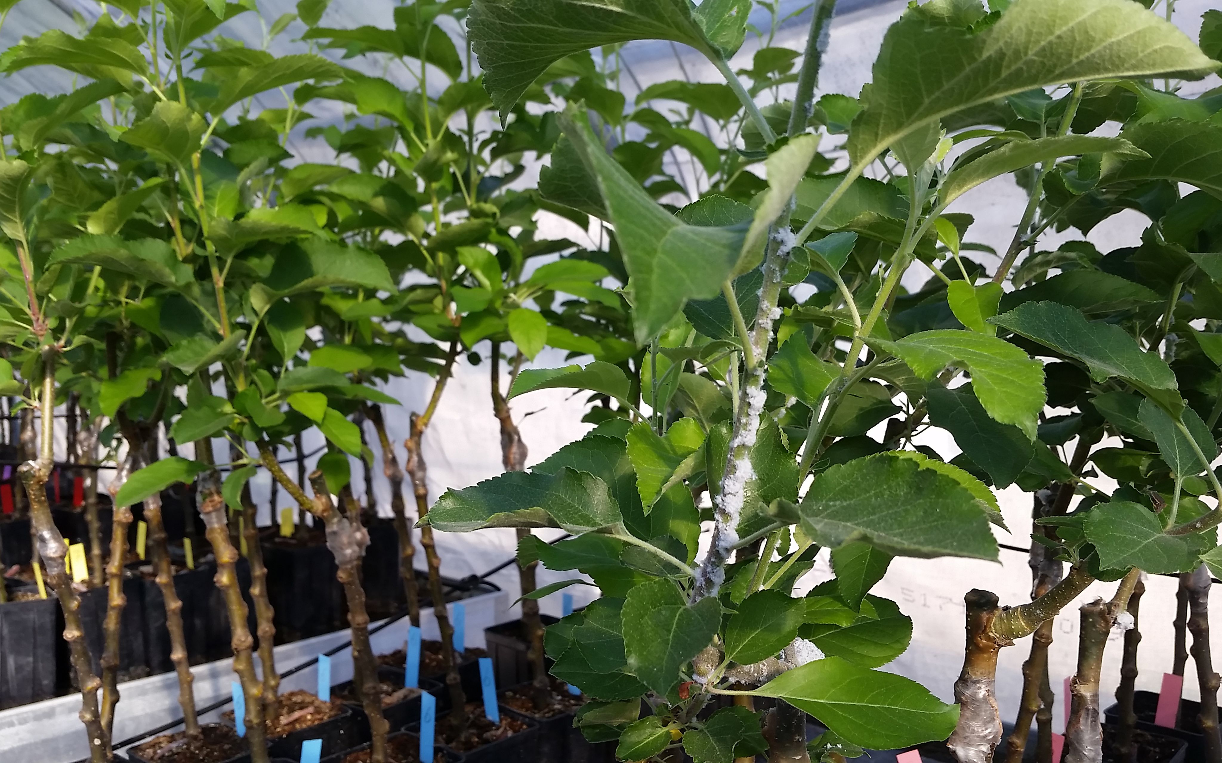 Nelle sperimentazioni in agricoltura biologica svolte dal Centro di Sperimentazione Laimburg, gli esperti hanno condotto uno screening su 30 varietà di melo. Lo screening ha dimostrato che esistono differenze nella suscettibilità dell’afide lanigero in diverse varietà e portainnesti. Inoltre, sono stati testati in campo diversi prodotti fitosanitari approvati per l'agricoltura biologica e diversi metodi di applicazione per verificarne l'efficacia, alcune dei quali hanno dato risultati interessanti. “Inoltre, abbiamo visto come anche la potatura e la concimazione siano fattori importanti, che possono favorire l’infestazione, in quanto ogni taglio nel legno rende la pianta più vulnerabile. Tuttavia, limitare la potatura influenza la produttività della pianta. Nella pratica agricola si tratta quindi di valutare caso per caso e trovare un equilibrio tra resa e controllo della vulnerabilità all’infestazione da afide lanigero”, spiega Markus Kelderer, responsabile del gruppo di lavoro Agricoltura Biologica del Centro di Sperimentazione Laimburg.