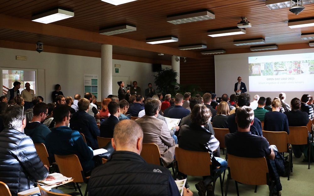 LIDO - Laimburg Integrated Digital Orchard è il laboratorio digitale a cielo aperto del Centro di Sperimentazione Laimburg. Si estende su circa un ettaro di frutteto e vigneto e offre un’infrastruttura moderna per lo sviluppo e l’innovazione nel campo della digitalizzazione e della robotica in agricoltura. Queste nuove tecnologie hanno un grande potenziale per creare un'agricoltura sostenibile per il futuro, soprattutto nel caso di colture come la frutti- e viticoltura. Il filo conduttore di LIDO per il 2023 è la “irrigazione intelligente e orientata alla domanda”. Il laboratorio a cielo aperto è a disposizione di enti di ricerca, aziende e start-up per poter testare le loro tecnologie, prototipi e prodotti. Sono già 14 le realtà che hanno risposto all'invito e hanno installato sensori tra i filari di LIDO. Dai sensori per la misurazione dell'umidità del suolo o della traspirazione fogliare a sofisticati sistemi di irrigazione smart: sono oltre dieci le tecnologie presentate durante l'Open Day LIDO del 10 ottobre 2023 presso il Centro di Sperimentazione Laimburg a Vadena. Gli oltre 120 partecipanti hanno avuto l'opportunità di vedere i sistemi e i sensori in azione in condizioni reali in campo e di scambiare idee direttamente con gli operatori e il team di ricerca del Centro Laimburg.